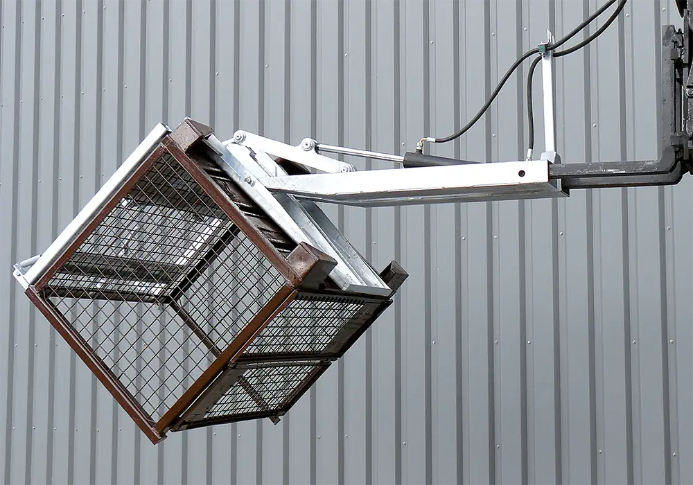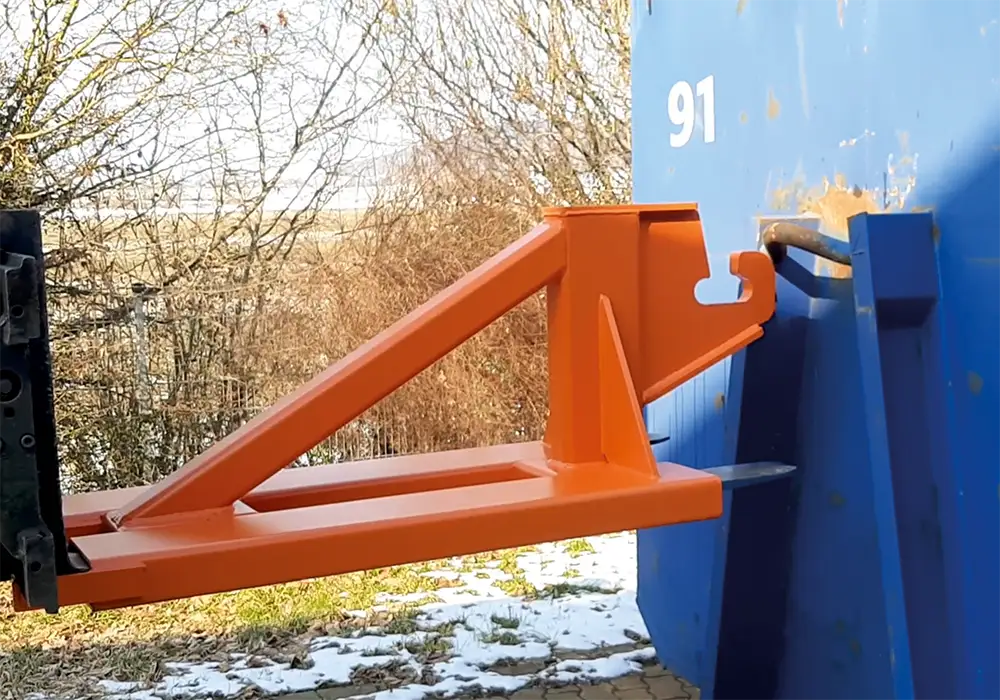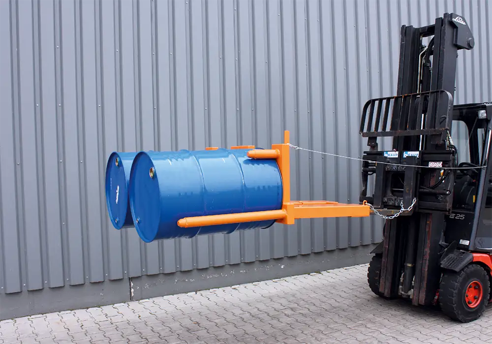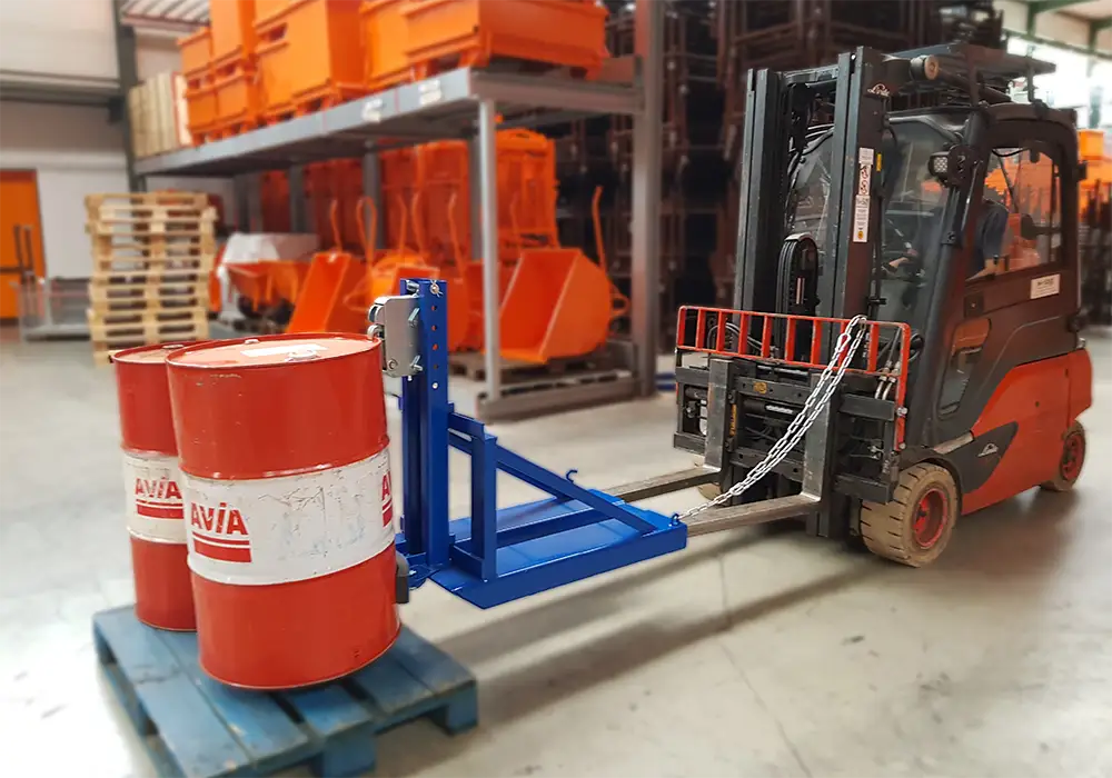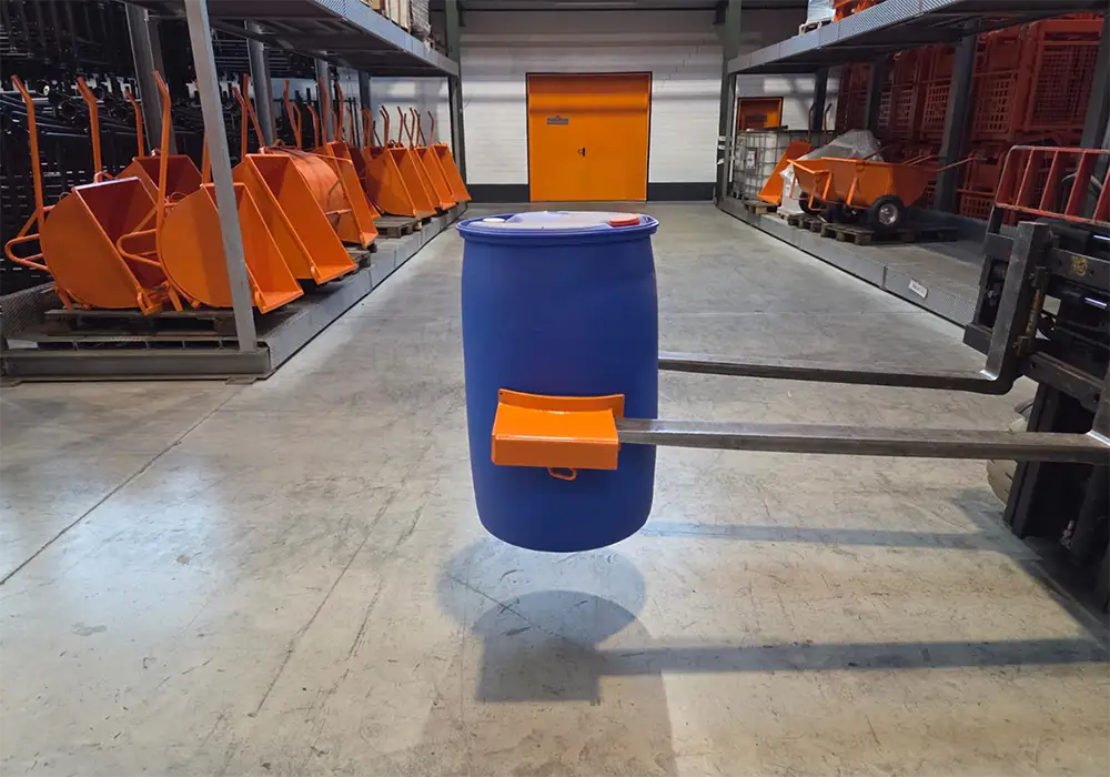 Mit Stapler-Anbaugeräten und Behältern kann der Händler jedem Kunden mit Gabelstaplern zusätzliche Produkte für Transport, Sammeln, Kippen und Fasshandling anbieten.